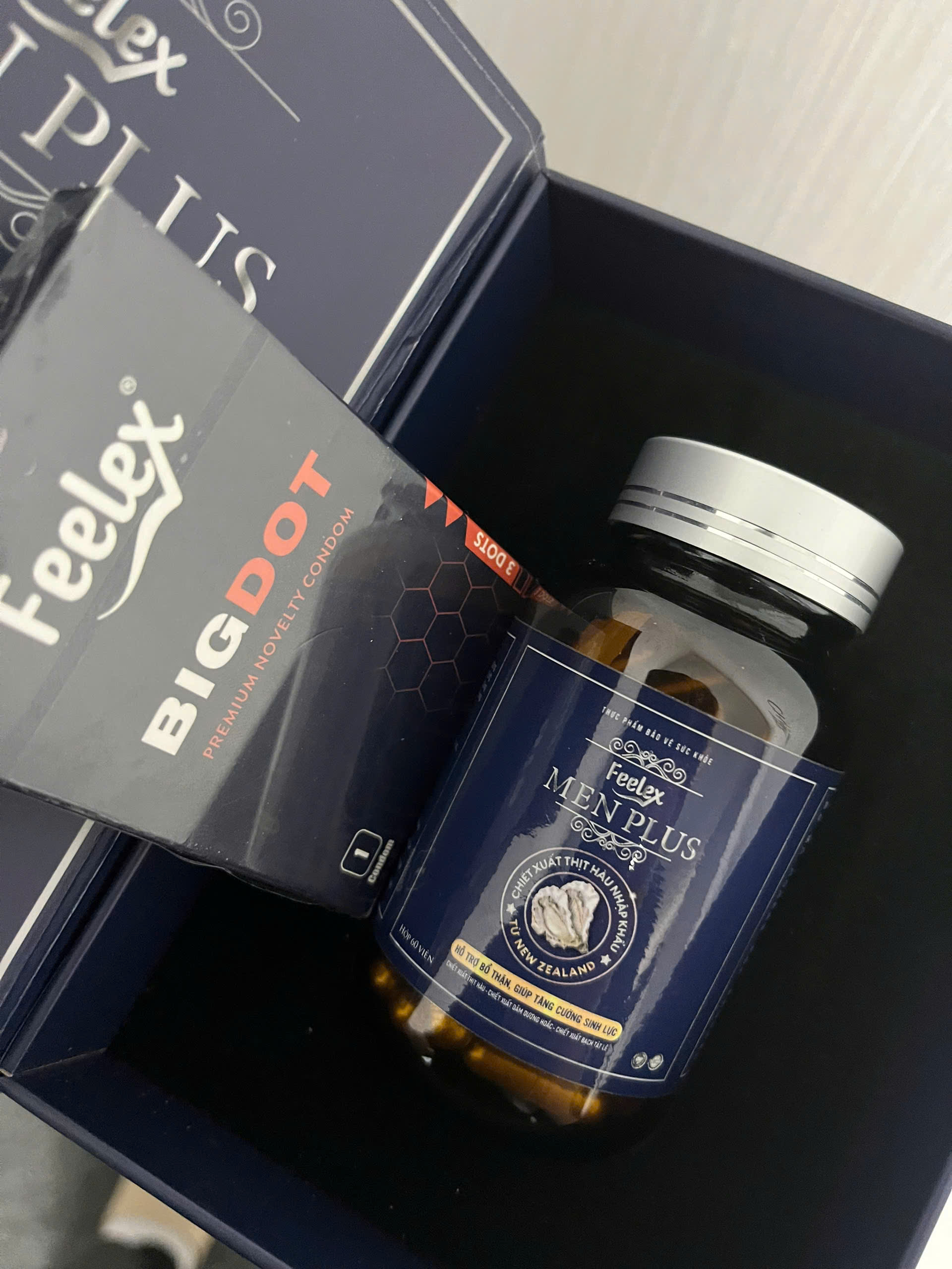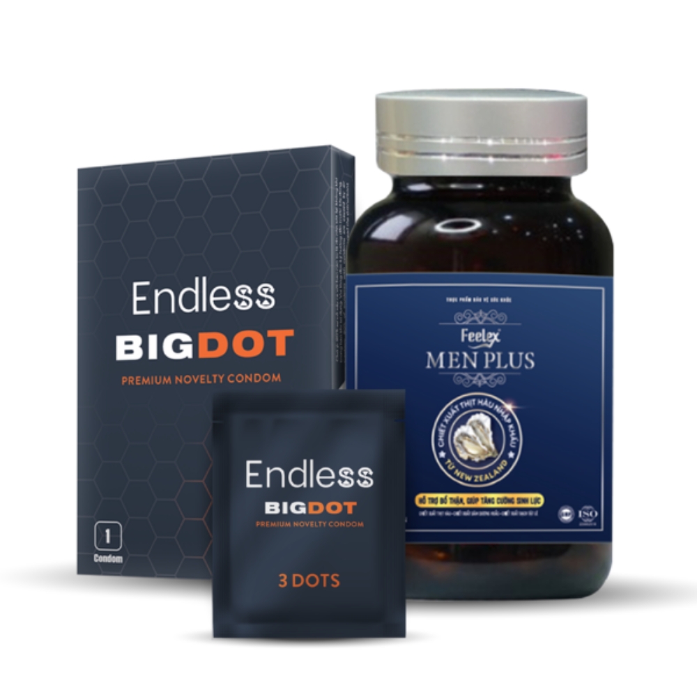 Dạ, Viên uống sinh lý MenPlus dùng đều đặn mỗi ngày hỗ trợ cải thiện sức khoẻ sinh lý, khi năng lượng đã đủ là lúc dùng đến Bao cao su bi Feelex Bigdot, BSC giúp tăng kích thước bề rộng, làm cuộc "yêu" của anh/chị càng thêm thăng hoa ạ!