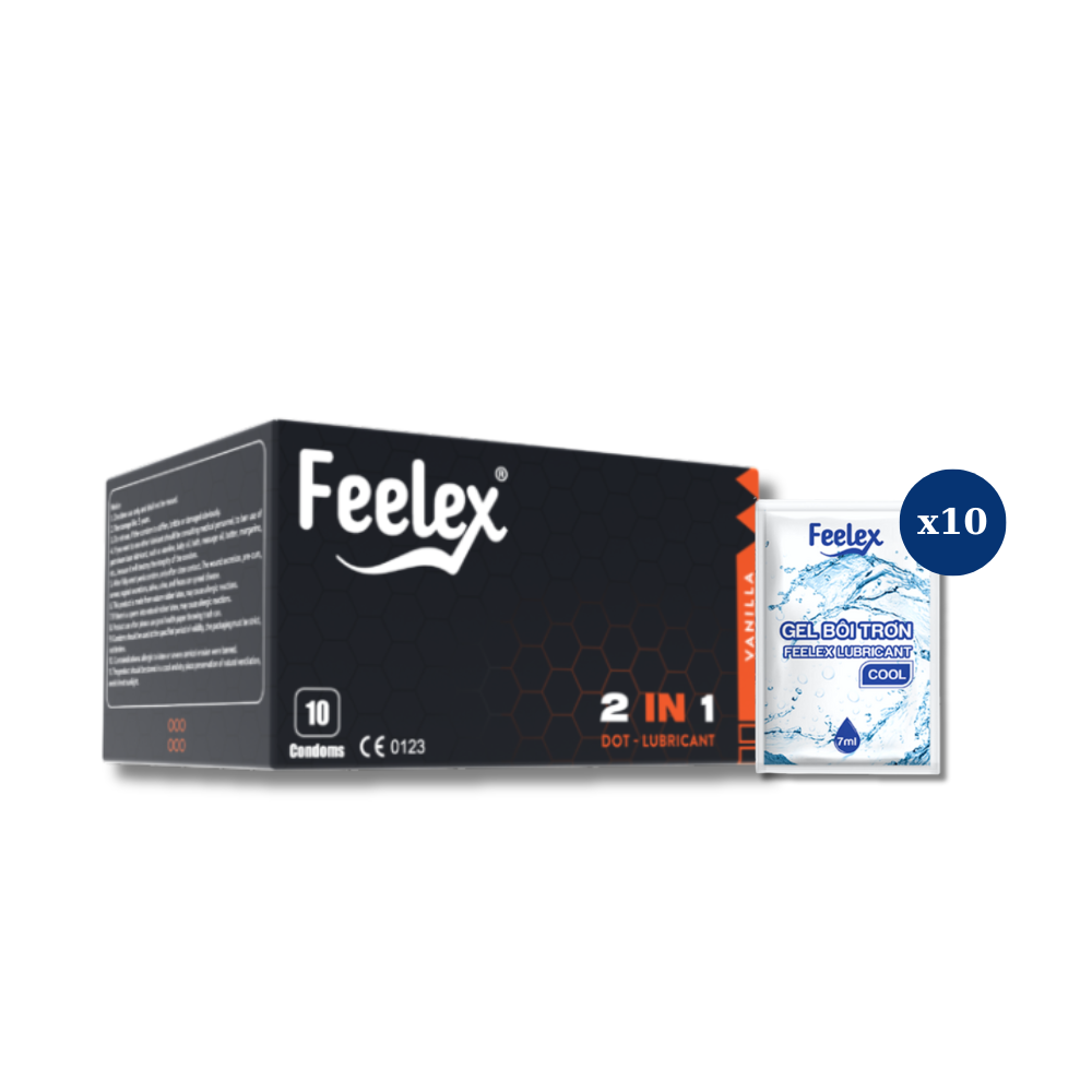 Combo gồm bao cao su Feelex 2in1 và gel bôi trơn Ultra Smooth dạng gói, đáp ứng đầy đủ nhu cầu cho một cuộc yêu trọn vẹn: an toàn, mượt mà và kéo dài thời gian. Không rườm rà, không phức tạp – chỉ cần đúng thứ bạn cần.