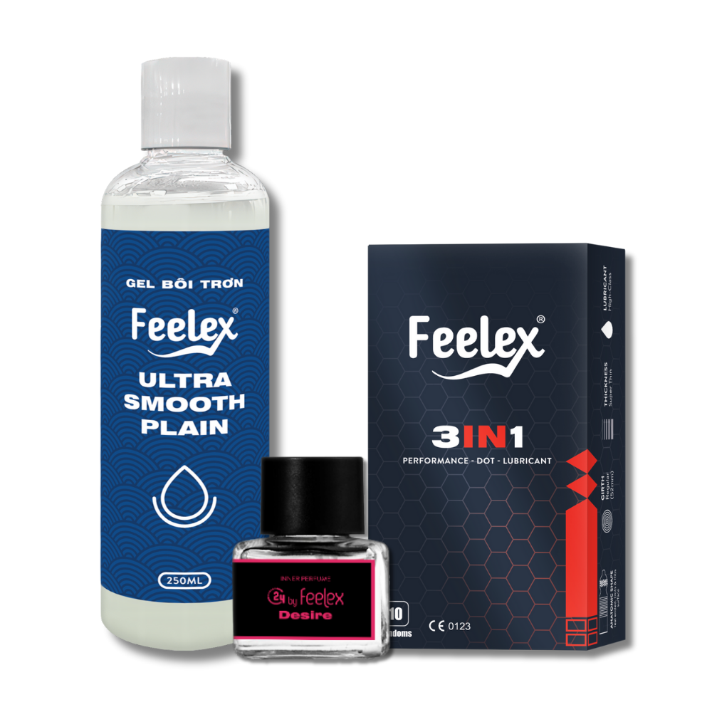 Không cần lăn tăn chọn từng món riêng lẻ. Combo này đã được Feelex thiết kế sẵn để phối hợp nhịp nhàng, hỗ trợ tối đa từ A đến Z trong mỗi cuộc yêu.