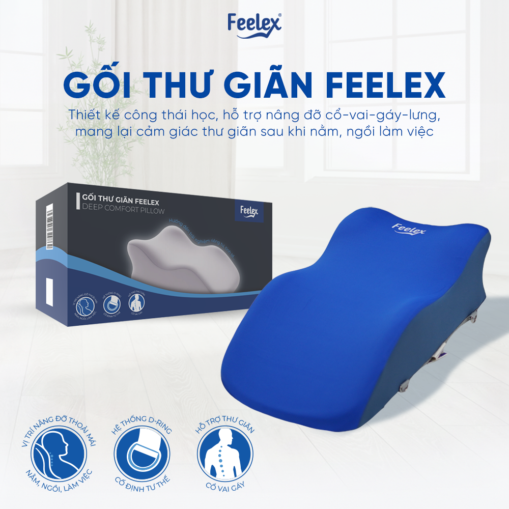Gối thư giãn Feelex thiết kế công thái học cao cấp là giải pháp hoàn hảo giúp bạn tận hưởng sự thư thái tuyệt đối ngay tại không gian riêng tư nhờ sự kết hợp đột phá giữa vật liệu tiên tiến và tư duy thiết kế hiện đại